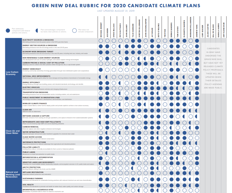 Data For Progress created a Candidate Climate Plan Summary for the debate-eligible Democratic candidates’ climate policy proposals to date.
