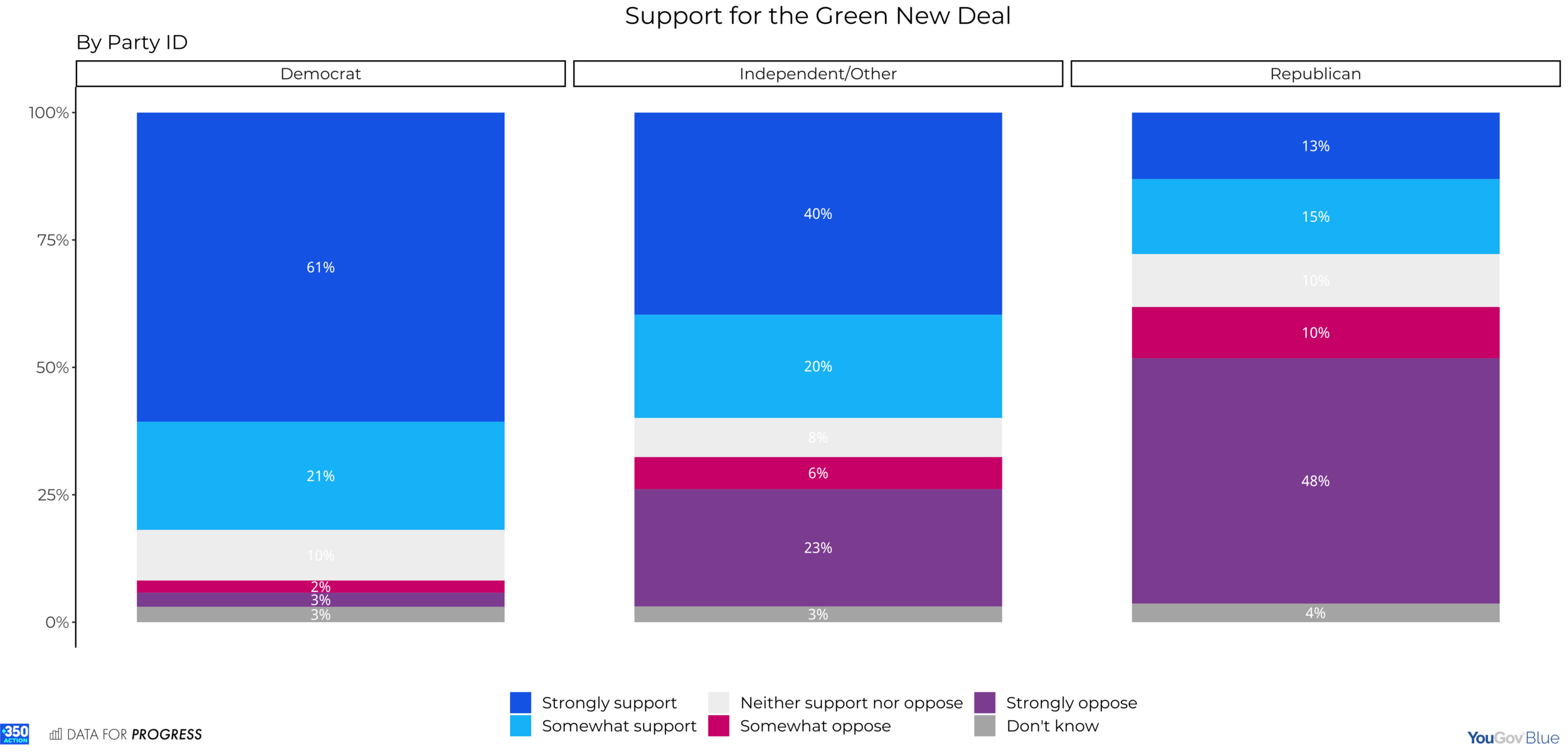 Republican attacks on the Green New Deal have failed to undermine a strong base of support for policies that would transition the US economy from fossil fuels to clean energy sources and drive job-creating investments in infrastructure and communities.