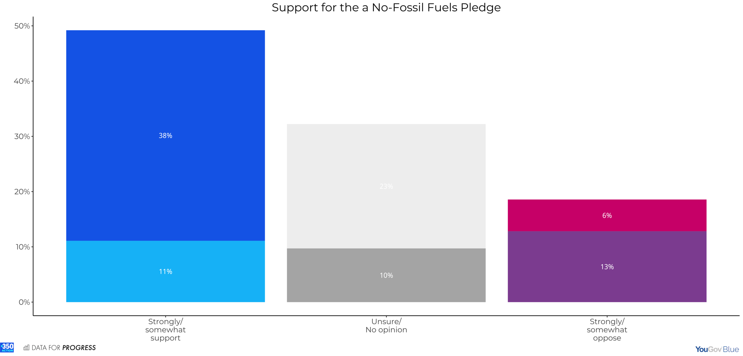 Finally, we asked respondents if they would support or oppose Federal candidates signing a pledge to refuse campaign contributions from the fossil fuel industry. Specifically, we asked respondents: